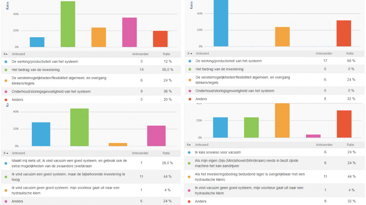Hierboven een paar highlights uit ons door ons gehouden enquete over de voor- en nadelen van vacuüm in vergelijk met een hydraulische klem. Slot conclusie: Investering is grootste bottleneck
